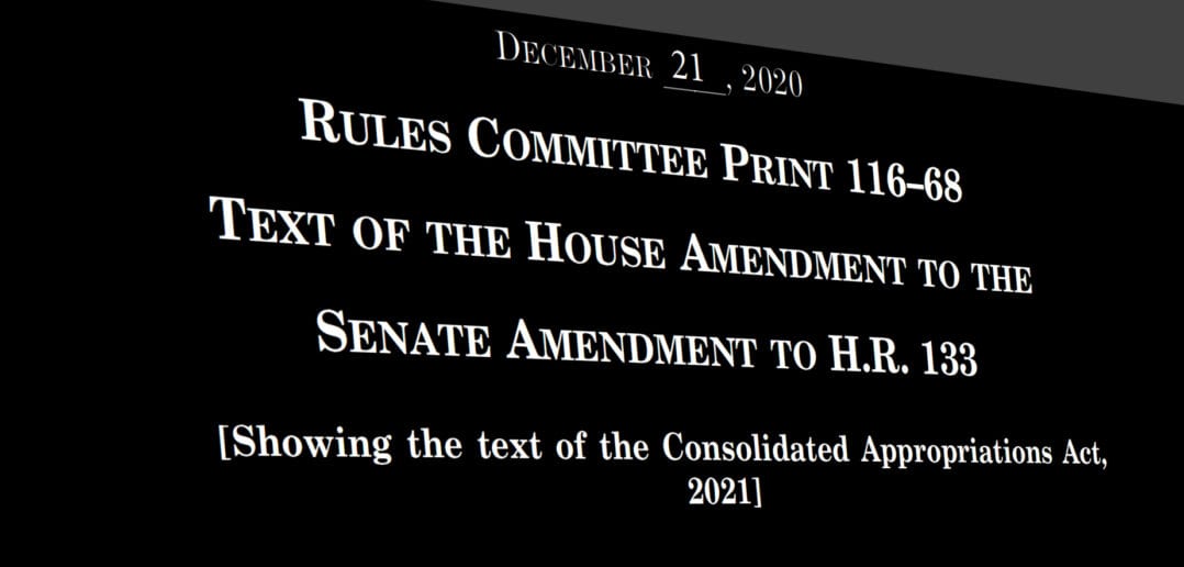 Below, you will find the passed copy of the Consolidated Appropriations Act, 2021, which includes the Coronavirus Stimulus package.