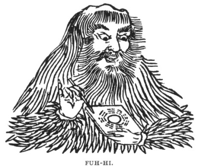 the legendary Fuh-Hi, 2 the other to Wen Wang. 3 Fuh-Hi is also called Feng, 4 "wind," and Tai Ho, 5 "the great celestial," and he lived, according to Chinese records, from 2852 to 2738 B.C. It speaks well for the mathematical genius of the ancient founders of Chinese civilisation that the original order of the yih, attributed to Fuh-Hi, corresponds closely to Leibnitz’ Binary System of arithmetic. If we let the yin represent 0 and the yang, 1, it appears that the eight trigrams signify the first eight figures from 0–7, arranged in their proper arithmetical order, and read from below upward. Leibnitz knew the yih and speaks of it in terms of high