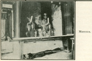 History does not clearly state how long Chü Fu-tsz labored here, but hereditary legend claims that he spent the rest of his life in this institution, and was buried in the shady grove back of the college. The legend also pretends to know the origin of his superhuman wisdom. When he came to live at the grotto, a hu li sien, "fox-fairy," in the likeness of a young woman, came to live with him and serve him. She brought with her a pearl of great value, and insisted upon Chü swallowing it. After long persuasion he yielded to her entreaties, and the pearl became in him the fountain of wisdom, such as is not possessed by mortal man. Soon after this a ka ma sien," frog-fairy," also in the likeness of a young woman, came to dwell with him. But alas, the women did not live together long in peace. In an altercation the last arrival said, "And who are you but a fox?" Replied the other, "And what are you but a frog?" The next day the two fairies were missing, and a dead fox and a dead frog were found lying under the old bridge below the college. They were buried with due ceremony in the college grove, where a little stone marks their resting place, to the credulous belief of the student and admirer of Chü Fu-tsz.