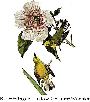 of Blue-winged Yellow Warblers, I have represented a species of Hibiscus, which