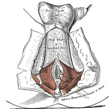 | The Transversus perinæi profundus arises from the inferior rami of the ischium and runs across to the side of the vagina. The Sphincter urethræ membranaceæ (Constrictor urethræ), like the corresponding muscle on the male, consists of external and internal fibers. The external fibers arise on either side from the margin of the inferior ramus of the pubis. They are directed across the pubic arch in front of the urethra, and pass around it to blend with the muscular fibers of the opposite side, between the urethra and vagina. The innermost fibers encircle the lower end of the urethra. | 39 |