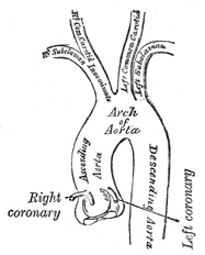 | | | Branches.The only branches of the ascending aorta are the two coronary arteries which supply the heart; they arise near the commencement of the aorta immediately above the attached margins of the semilunar valves. | 4 |