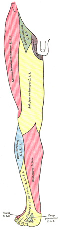 | The posterior branch (ramus posterior) pierces the anterior part of the Obturator externus, and supplies this muscle; it then passes behind the Adductor brevis on the front of the Adductor magnus, where it divides into numerous muscular branches which are distributed to the Adductor magnus and the Adductor brevis when the latter does not receive a branch from the anterior division of the nerve. It usually gives off an articular filament to the knee-joint. | 21 |