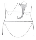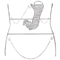 | FIG. 1049 Diagram showing shape and position of distended stomach. Erect posture. (Hertz.) (See enlarged image) | | |