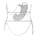 | FIG. 1047 Diagram showing shape and position of empty stomach. Erect posture. (Hertz.) (See enlarged image) | | |