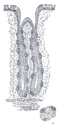| FIG. 1055 A fundus gland. A. Transverse section of gland. (See enlarged image) | | |