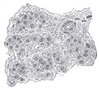 | Each is invested by a fibrous capsule and consists largely of spherical or irregular masses of cells (Fig. 1186), the masses being more or less isolated from one another by septa which extend inward from the deep surface of the capsule. The cells are polyhedral in shape, and each contains a large nucleus imbedded in finely granular protoplasm, which is stained yellow by chromic salts. Numerous nerve fibers, derived from the sympathetic plexus on the carotid artery, are distributed throughout the organ, and a net-work of large sinusoidal capillaries ramifies among the cells. | 22 |
