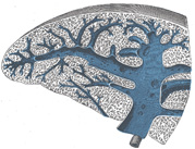 | FIG. 1190 Transverse section of the human spleen, showing the distribution of the splenic artery and its branches. (See enlarged image) | | |
