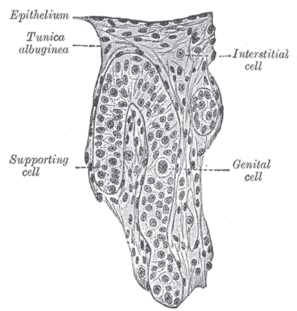 Section of a genital cord of the testis of a human embryo 3.5 cm. long. (Felix and Bühler.)