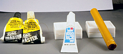 Faceting Paraphernalia: Various adhesives are used in faceting, such as epoxy resin, cyanoacrilate "Super Glue", and faceting wax. Different gem cuts require different index gears, the one below has 96 slots and can cut gems with 3, 4, 6, 8, 12 and 16-fold symmetries (other indices would be used for gems with 5 or 7-fold symmetries). The dops are commonly made of brass and come in a large variety of sizes. Seen below are three: a flat, a cone, and a "vee". Each is used for rough of certain shapes, or during different points in the faceting process.