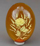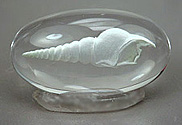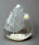 4) Surface engraving/carving: In this technique a cabochon is decorated with designs carved into it (front, back or all round). Highly transparent material is sometimes "reverse" carved where the design, usually left unpolished, is cut into the back to create a picture visible from the front. The three dimensional scenes which result require great skill to accomplish, and can be stunningly beautiful.