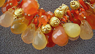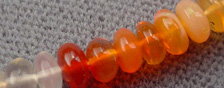 [Side to side drilled pearls, half drilled pearls, tubular turquoise beads with pearls] [Top to bottom drilled jet beads for dangles, non-centered side to side drilled carnelian briolettes for dangles] [Fancy cabochon bead, rondell strand of Mexican opal, baroque (tumbled) bead strand of howlite] Engraved and Carved Gems: Gems fashioned by engraving are incised, so that a design is cut (shallow or deep) into their surface, whereas carved gems are fully three-dimensional.