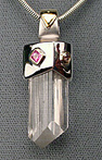 When metalsmiths mount an unfashioned gem, strategically placed prongs, or special adhesives are used to make attractive and secure settings. The pictures below show some of the ways in which unfashioned gems are used: