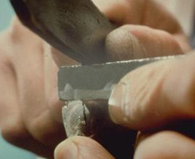 **Check the text: On page 30 of the Hall text is a picture of a Stone Age obsidian ax, which the author says is "attractive as well as practical". Is it just me, or does anyone else fail to see how this item could be used to actually chop anything with?? :-)