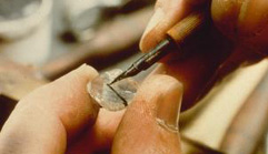 Engraving and carving gems is, like bead making, a very early form of lapidary. Historically, such pieces were done by hand with bone, stone, or metal tools and suitable abrasives. The choice of tools was dependent on what was locally available, and on the hardness of the material being worked. There are still a few hand carvers who carry on this tradition. For the most part, though, today's gem carvers and engravers use electrically powered tools with silicon carbide or diamond tipped implements.