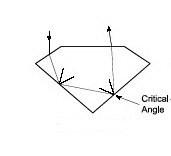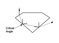 The Critical Angle: Each gem species, depending (with an inverse relationship) on its refractive index, has a pavilion faceting angle below which it loses brilliance.