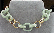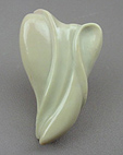 2): Aggregate materials like jasper, agate, chalcedony and especially the jades: nephrite and jadeite, are very tough, which means that they will not easily break when the forces of the carvers' tools are used to make and/or separate relatively thin areas. This is particularly true for interlinked forms which require a lot of force on a small "thread"of material attaching one piece to another. Single crystal materials, being less tough, break much more easily.