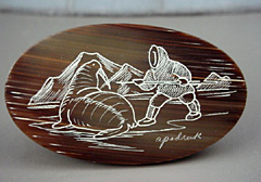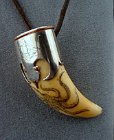 3) Scrimshaw: In this technique a design is shallowly engraved into the surface of horn, bone or ivory then inked, or painted to provide contrast or color. Scrimshanders have a long history, particularly among those peoples who traditionally hunt either marine mammals, elephants, or other herbivores with antlers, horns or sizeable teeth or tusks.