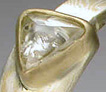[A diamond in the cutting process, note the tang holder and the spinning scaife: Image courtesy of GIA] [Before and after: a rough diamond, a brilliant cut diamond: Image courtesy of thaigem.com] Answers to the thought questions for this lesson: (If you don't understand why these are the answers, then it's a good time to email me and ask!)