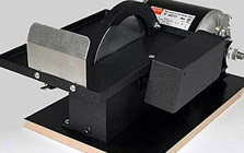 [Sawn amethyst geode weighing 10.5. lb: Image courtesy of Treasure Mountain Mining] Lapidary saws come in a variety of sizes from tiny facetors' trim saws with four inch blades, to standard rock slicing saws of 8 - 18 inches, to giant behemoths used to cut boulders. [A small lapidary saw, a giant saw used in preparing jade boulders during the mining process: Image courtesy of www.jademine.com] Unlike the blades of more familiar wood saws, lapdiary saw blades do not have teeth per se. In fact, what we call sawing, in lapidary, is really a grinding process. The blades are generally thin round disks with an abrasive grit such as silicon carbide, emery, or diamond embedded into the rim.