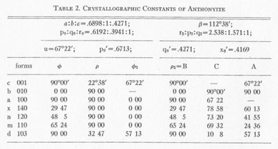 TABLE 3. STRONGER POWDER PATTERN LINES FOR ANTHONYITE AND
