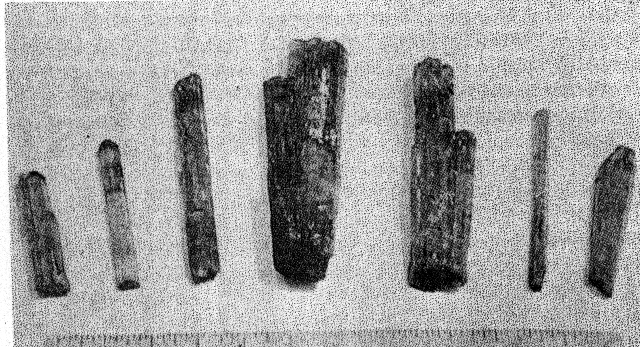 BERYL PEGMATITES Pegmatites characterized by beryl are the most abundant of the complex pegmatites of the region. The beryl pegmatites are of two types, those that have "pockets" and those that do not. The pegmatites having no pockets are small dikes or lenses of common pegmatite, with some subhedral beryl, but with no open-space deposition. The pegmatites containing pockets have been further complicated by successive deposition of fine euhedral crystals of microcline, beryl, smoky quartz, albite and fluorite on the walls of the pockets. Beryl-smoky quartz pegmatites: Several pegmatites of this type which had, pockets containing a variety of well crystallized minerals were found. One of the best exposed of these pegmatites was found by Over, near the summit of White Mountain. It out-cropped on a vertical cliff, and, therefore, was one of the least weathered of all the pegmatites seen. The pegmatite was a lens-shaped body approximately 12 inches across and had a roughly cylindrical central cavity extending back about 4 feet into the cliff. The pocket minerals were attached to the walls of the central opening and projected into it. The open, space was partially filled with "pocket dirt," most of which was formed by surface weathering. The periphery of the pegmatite was graphic granite several centimeters thick, to which was attached the pocket minerals. Fine crystals of perthitic microcline ranging up to 10 cm. in length were found both as single individuals and as Carlsbad and Baveno twins. Beryl started to crystallize at the close of the microcline deposition. The beryl crystallized in fine green to deep blue transparent crystals up to 7 cm. in length. Smoky quartz followed beryl, and formed sharp crystals up to 10 cm. in length and of deep smoky color. The smoky quartz formed as low-quartz, as shown by frequent development of faces of a trigonal trapezohedron. Muscovite followed quartz and in part was deposited contemporaneously with it. Albite closely followed muscovite and can be seen replacing muscovite. However, some of the muscovite is definitely later than the albite. It is not known whether this represents continuous deposition of muscovite, or two separate generations. Albite in some cases formed complete replacement pseudomorphs of microcline; in others it only partially replaced it, or formed shells about the microcline crystals. Most of the microcline was then removed by solution, leaving hollow shells of albite. Abundant sericite was formed by the alteration of microcline. Fluorite, colorless quartz and limonite were present in small amount. A tabular summary of the paragenesis of this pegmatite is given in Table 1, column 1. PHENAKITE PEGMATITES Next in abundance to pegmatites characterized by the presence of beryl are those which have only phenakite as a beryllium mineral, and show no evidence of beryl having been present. All of the pegmatites of this type contain pockets, but the complexity of the pocket-mineralization is greater where smoky quartz is present. Here, as in the beryl pegmatites just described, the presence of a cavity containing smoky quartz seems to indicate a center of more prolonged mineralization, with gradually decreasing temperature. Phenakite-colorless quartz pegmatite. The simplest of the phenakite pegmatites are in a pegmatitic area exposed on a cliff on the southeast side of Mt. Antero. The pegmatites are highly siliceous, being composed dominantly of milky quartz, with some subhedral microcline. The phenakite is found in small pockets lined with crystals of colorless or light smoky quartz ranging up to several centimeters in length. The phenakite crystals are both single and twinned and have a maximum length of about 5 mm. They are found either loose in the pockets or partially embedded in quartz. The only other mineral present is a small amount of muscovite. Phenakite-smoky quartz pegmatite. In the same pegmatitic area just described one smoky quartz pocket was found by Over. The pocket was approximately 18 inches across and 4 feet deep, and was lined with large crystals of microcline and smoky quartz. Euhedral crystals of microcline with a maximum dimension of 22 cm. show an etched peripheral zone about 2 cm. wide formed by the solution of the albite lamellae of the perthite. Muscovite was not abundant and in part overlapped with microcline in its deposition. Smoky quartz was very abundant and formed crystals ranging up to 30 cm. in length. Some of the crystals are greatly distorted by flattening parallel to a prism face, and many smaller ones are completely doubly terminated and show no place of attachment to the walls of the pocket. Phenakite crystals ranging up to 1 cm. across were very abundant. The phenakite is fixed in the sequence of mineralization by the fact that the crystals are commonly emplanted on, but not embedded in, smoky quartz. Both single and twin crystals were present, but the single crystals were more abundant. A late-stage introduction of albite followed quartz and phenakite, but the amount of albite introduced, mainly by replacement of microcline, was small. Fluorite was present in good octahedral crystals ranging up to 5 cm. in size. Colorless quartz formed as either small individual crystals or as "caps" on some of the smoky quartz crystals. A tabular summary of the paragenesis of this pegmatite is given in Table 1, column 2. BERYL-PHENAKITE-BERTRANDITE PEGMATITES Two of the pegmatites examined contained all three of the beryllium minerals -- beryl, phenakite and bertrandite. These two pegmatites varied considerably in their paragenesis and will be described separately. Beryl-phenakite-bertrandite pegmatite. This pegmatite is located on the south slope of Mt. Antero. It has been almost entirely excavated by previous collectors, but abundant material on the dump, and information furnished by Over, who collected some fine bertrandite specimens there on previous trips, made it possible to build up a fairly complete pictur