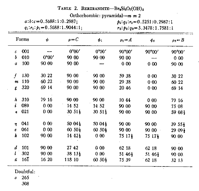 Bertrandite from Mt. Antero: Am. J. Sci. (3), 36, 52-55 (1888).