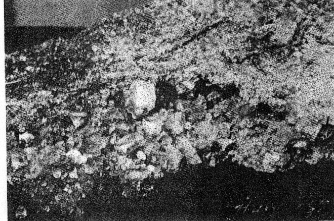This is the most complete analysis made of the deep water and may be taken as the standard. It is worth noting that calcium and sodium chlorides form 99% of the total salts, and calcium and sodium bromide form three-fourths of the remainder. Lane, A. C. The Keweenaw Series of Michigan: Mich. Geol. Survey, Pub. 6 (Geol. ser. 4), p. 794, 1908. 2 Idem., p. 859. 3 Jour. Am. Chem. Soc., vol. 50, pp. 1625-31, 1928. 4 Fisher, F. Some additional photographs of halite from the Quincy on display at the Seaman Museum - DVB(2001) Photo 1 ( stalagtite is 8 cm long) Photo 2 (largest crystal specimen is 8 cm across)