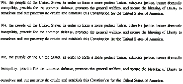 of text. The same can be done by starting a line of text with a space. Figure 21.4 shows the output of Listing 21.1, but includes a break after "the general welfare."
