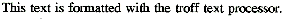the formatting codes do not appear in your document. Text processors like nroff and troff are called descriptive markup languages, which means that you enter the formatting codes into your document like any other text, and you don't see the effects of