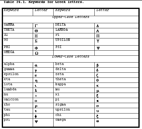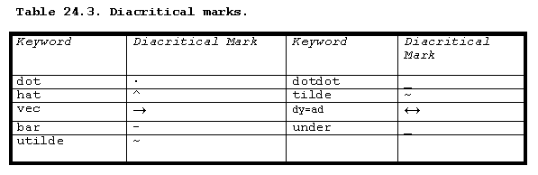 You can also change fonts and point sizes in an equation. Table 24.5 describes the keywords used.