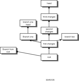 See Figure 30.5 for an example of a revision tree that has branches. For this project, there is a main line of development that is targeting the next product release and a branch on product development that is producing patches to the previous release.