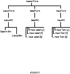 The application then creates a Form widget on this top-level widget. A Form widget places other widgets on top of itself. It is a Manager widget because it "manages" other widgets.