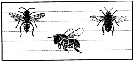 Description: Insect with brown or black, hairy bodies. Generally found in colonies. Many buil wax combs.