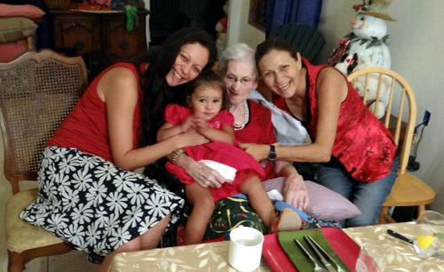 My Mom, Laverne (Gami): Every morning flocks of large, stately white herons fly across the sky in search of food. This morning, during my meditation, I saw one lone white heron flying twice as high, sunlight shining on it like a plane way up high, going in the opposite direction. I said without knowing, “Bye Gami. Happy flying!” And then the news came. Our dear Gami has gone flying! Safe journey. We know this will be your best trip ever! The night after Gami passed, just a week ago, was the Supersized or Supermoon The moon was extra close to Earth, giving the best view for decades. I woke up in the middle of the night, the full moon shining in the windows and filling the room with light. I went outside. The fireflies were dancing and the crickets and frogs were singing. “Wow. What a moon!” I exclaimed. From far above this celestial body came a laughing, twinkling reply, “You should see it from up here!” My Mom was born into a pioneering family. Gami’s life was not easy at times but her wisdom and strong faith pulled her through. She was an inspiration and comfort to those around her. She walked her talk. One of the many wise things Gami taught me was to be thankful for all the gifts in our life. Life isn’t fair sometimes but don’t whine about it. Think better thoughts, look for the good around you, look for the good in people, and when all else fails cook up a fantastic meal with LOVE and make it a party!!