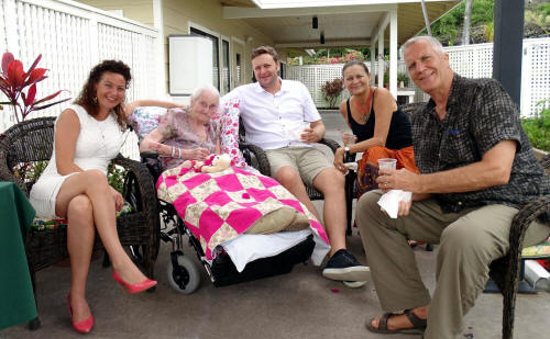Gami taught me to follow my dreams. Give it a try. It only costs a 7 cent stamp (a few years ago now!) Her encouragement taught me that possibilities are endless in life. We had so many fun, exciting adventures together. After working for the F.B.I. during WWII she returned home to a small town in northern Wisconsin and there she remained, living a simple, happy, country life raising two kids. She was always helping those around her and was loved by all who met her. She had gypsy in her blood and always wanted to explore the planet. As I got older we shared this passion and she was able to travel with me/us to Europe, New Zealand, Australia, and S. E. Asia. She never complained, even when travel forced her into uncomfortable situations. She just looked at what life presented her at the moment and made the best of it. Whether in a simple little town in N. Wisconsin or in Paris or in Rarotonga or in BC or in Hawaii – Make the Best of the Moment, of the Day, and Be Happy! How many people could keep this attitude up even after a major stroke landed her totally disabled, bedridden, in a wheelchair? Sitting in the garden with Gami one day, she in her wheelchair, I asked her what she would like to do. Back came a resounding, “Dance!” So I started singing loudly and spinning her around. We laughed and laughed. She told me, “You just got to keep on dancing!” And I dance every day, like nobody's watching!
