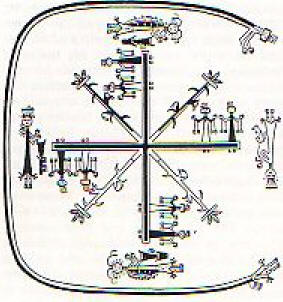 The caduceus (see # Origins of the Caduceus, As Told in the World’s Oldest Language, Symbolism # 2) is three dimensional not two as it is usually seen drawn on a paper or carved on a flat surface. When you look straight down on the caduceus the 2 serpents remind you of the 2 swastika’s. The "Suavastika" which Max Müller named and believes was applied to the Swastika sign, has the ends bent to the left or counterclockwise (Female sign). The Swastika, has the ends bent to the right or clockwise (Male sign).