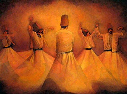 pilgrim visited a Sufi saint. Rumi went on to compose over 30,000 lyrics of the heart; all of them filled with Love from inside his heart, shining radiant like the moon. The poetry indeed accomplishes the goal to force us out of our minds and into our hearts. Composed in a state of ecstasy, the poetry remained down to earth, often relating and describing this love apparent to all in Nature or simple everyday tasks such as the 'singing' of the tap, tap, tap of the goldsmith in the market. The whole world, to Rumi, was making a joyful noise or song unto the Lord. Rumi used to go with his disciples into Nature, often composing verses he heard vibrating or singing from the birds, trees, flowers around him. He was inspired by the music of flutes and drums and often would whirl and recite in a form of ecstasy. Rumi always remained a respected member of Konya society, and his company was sought by the leading officials as well as by Christian monks. His burial procession was attended by a vast crowd of people of many faiths and nationalities. His mausoleum, the Green Dome, is today a museum in Konya; it is still a place of pilgrimage, primarily for Turkish Muslims. "Respond to every call that excites your spirit" - (Rumi) Responding to a call we headed towards Konya, birthplace and school of beloved Sufi master, Rumi. Also known as Mevlânâ, Rumi was a 13th-century Persian poet, jurist, Islamic scholar, theologian, and Sufi mystic. A fascinating complex, the mosque, school and museum echo the rich history of Rumi. We met a young man during our search for a hotel near the Mevlana museum. We spent most of the day and evening with him. A polite young man, he was fascinated to be in our company practicing his English and we benefitted from his knowledge of the back alleys of Konya. A rare treat is the Mevlevi Sema Ceremony. Visiting on the day when it was being performed was not a coincidence - just the way our lives and travels open up. This ceremony, performed in the newly built cultural center, represents "the mystical journey of man's spiritual ascent through the mind and love to perfection." It takes you on a spiritual journey of dervishes whirling for Divine Love. This 800 year old tradition is stunning and inspiring, performed for Allah or God, not the audience. All of life is in constant motion. We are all constantly spinning or whirling. As beings living on a planet rotating, spinning, whirling through the galaxy, we are always in motion. The Sufi Whirling Dervishes believe that if we join in this force of life we become one with God. Joining in whirling meditation, taught by our new 84 year old friend in Osho's Ashram in India, I experienced Rumi's sweet ecstasy of connecting to our internal source, the One, God, Love, Infinite Consciousness. Lost in this Oneness, I was able to whirl for 20-30 minutes. Ecstacy! I long for this connection throughout the day, not just in my morning meditation. It was interesting to note that time disappeared when in the timeless blur of whirling, but as soon as one goes back into the thoughts of the mind you simply fall down, crashing back into the 'real world' of human existence. The Sufi's