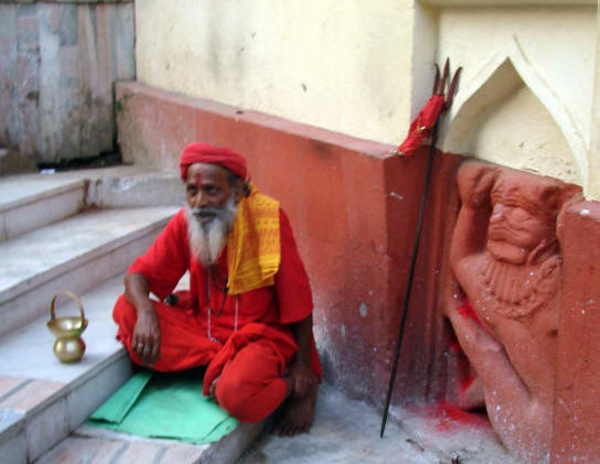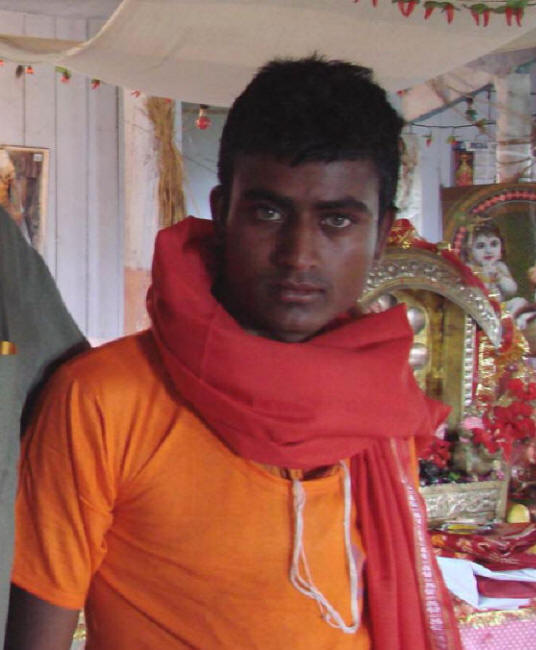 A mysterious-green eyed priest at the Durga Temple in Nartiang.